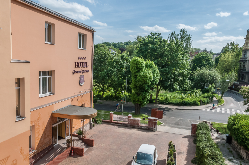 Das Hotel befindet sich im historischen Zentrum der Stadt Teplice auf Sichtweite der Kurparks und ist mit Villen aus der Wende des 18. und 19. Jahrhunderts umgeben. Seine Dominante sind vor allem die elegant bearbeiteten Interieurs in Kombination von seltenem Holz mit Polsterung von italienischen Meistern.